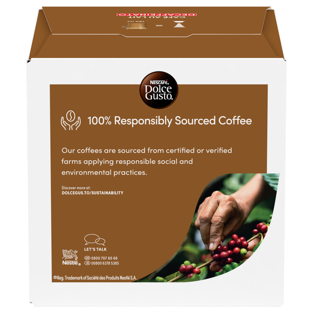 If you want more of our deliciously milky coffee without all the caffeine, discover the NESCAFÉ® Dolce Gusto® Café au Lait Decaf coffee pods bundle. With 96 pods available, you’ll never miss out on your favourite cup. This pack includes: 6x Café au Lait Decaf