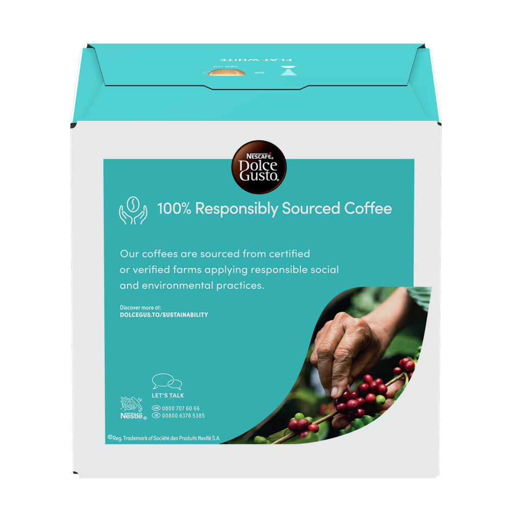 Discover our NESCAFÉ® Dolce Gusto® Flat White Coffee pods bundle. Bring this delicious creation straight from trendy Australian coffee shops to your home. With 96 pods available, you can enjoy an aromatic espresso combined with a fine milk foam, offering a balanced coffee with velvety notes. This pack includes: 6x Flat White